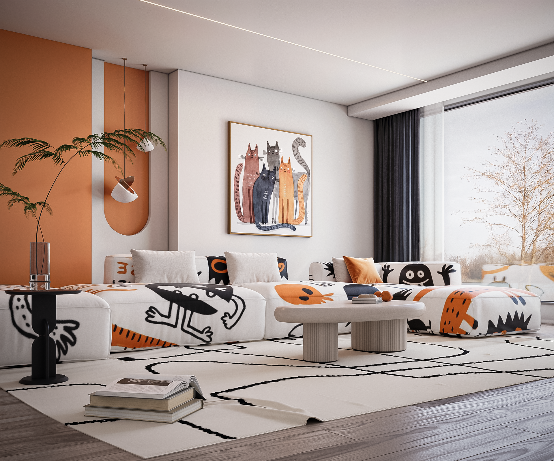 Piano Wall & Cozy Library Design