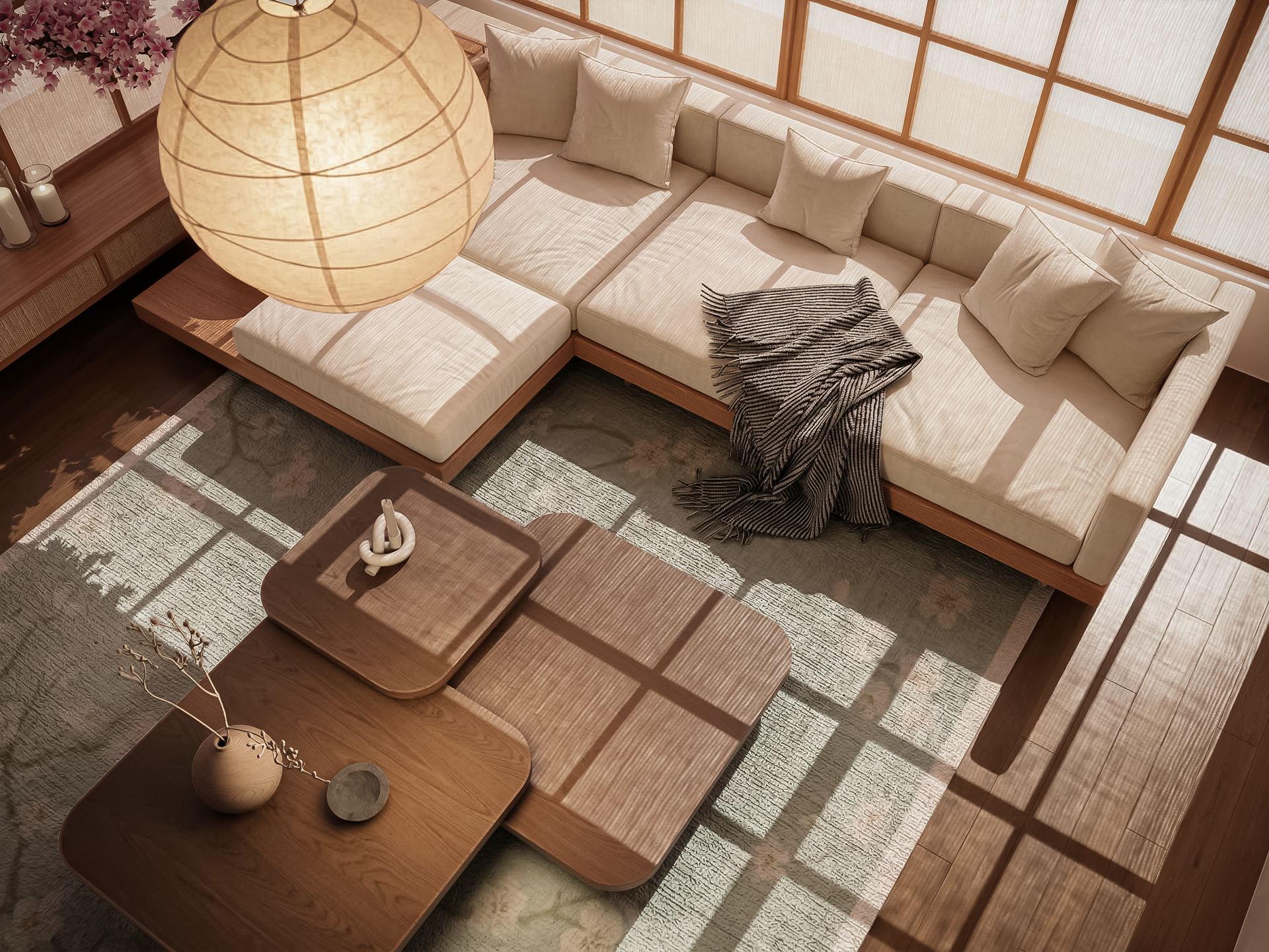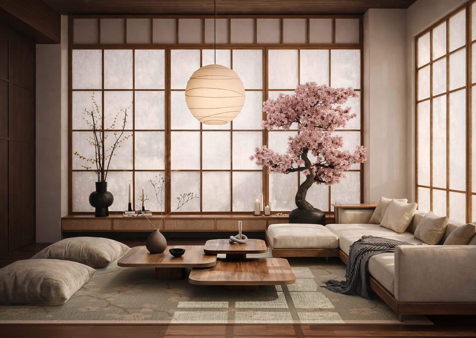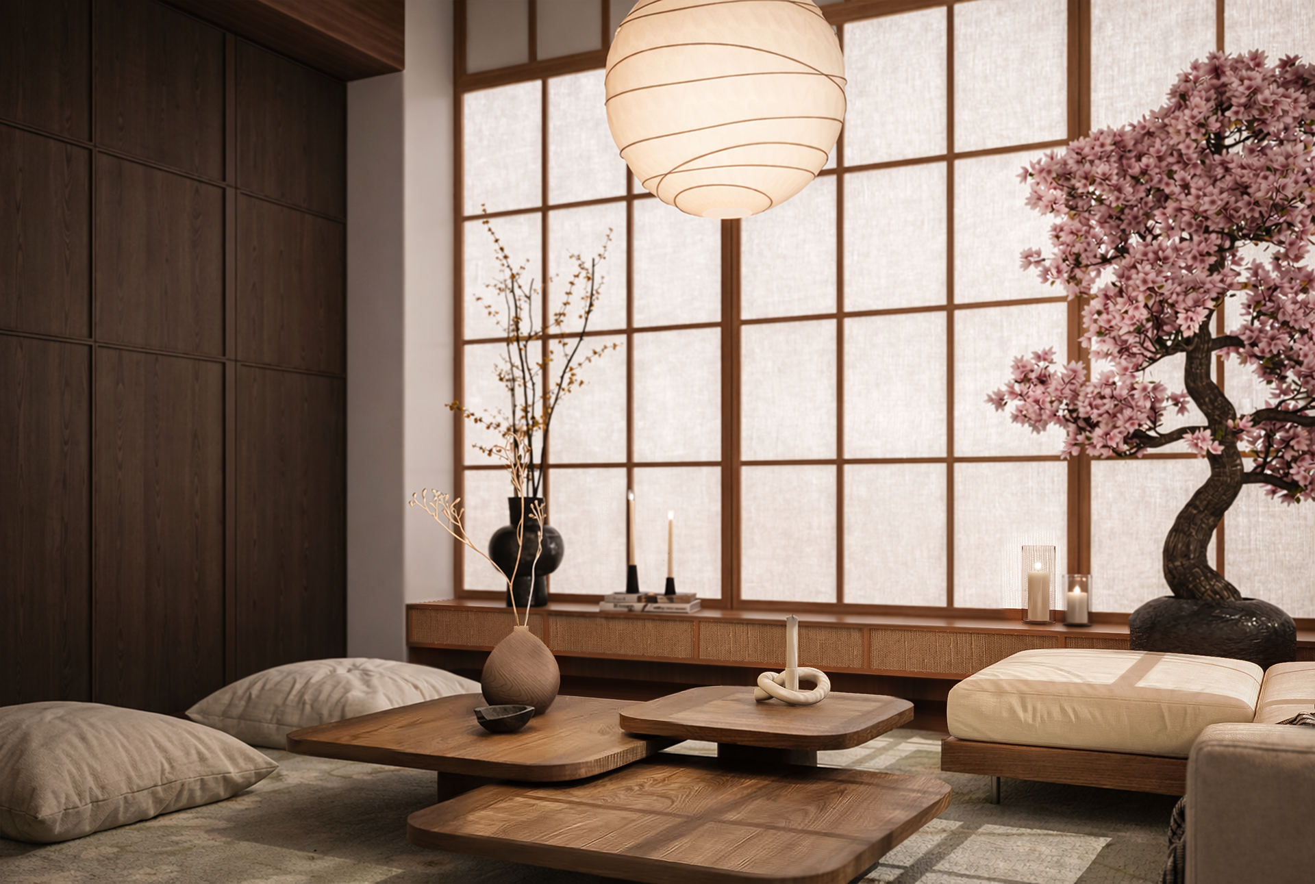 Japandi Living Room Interior Visualization