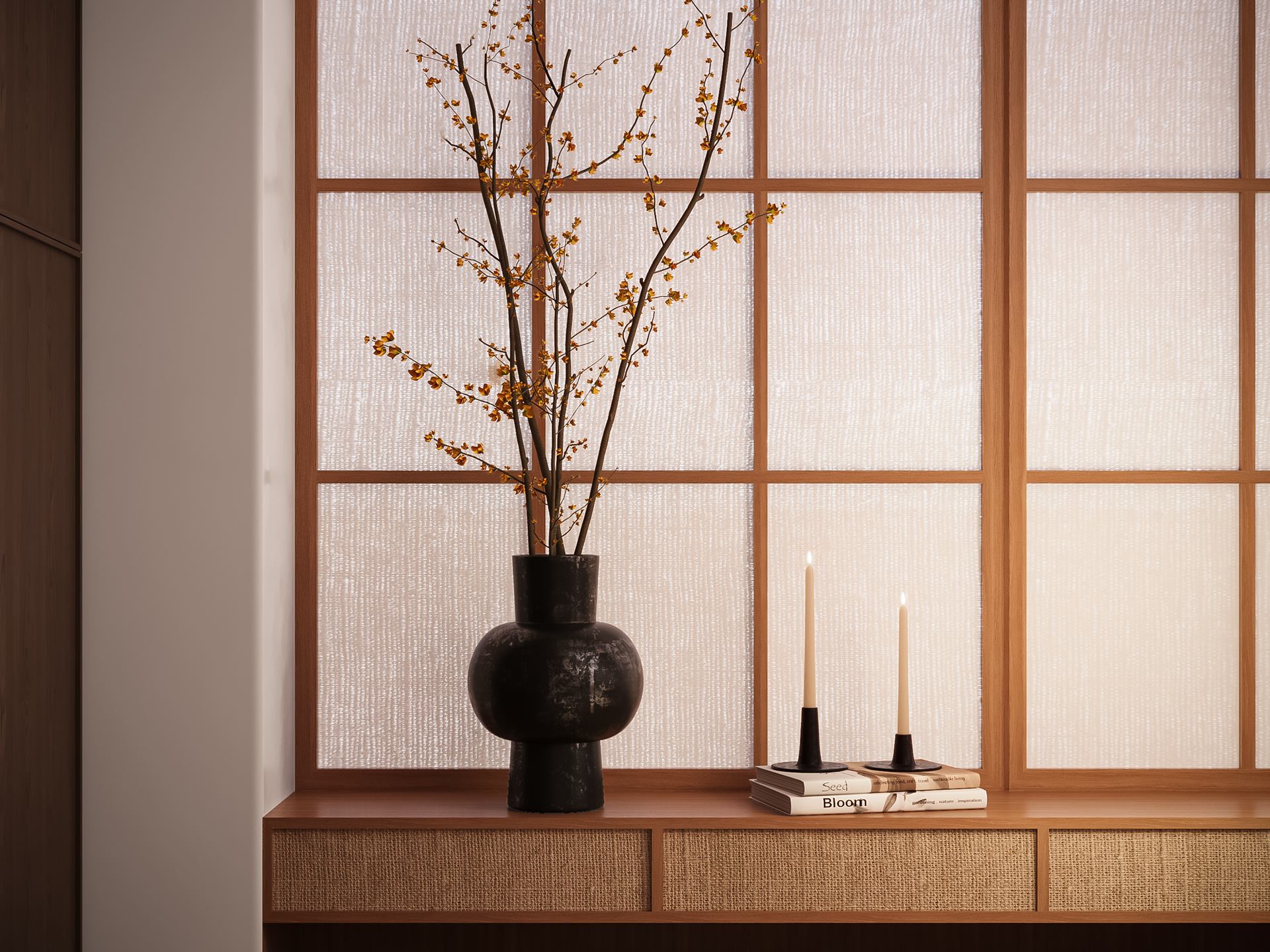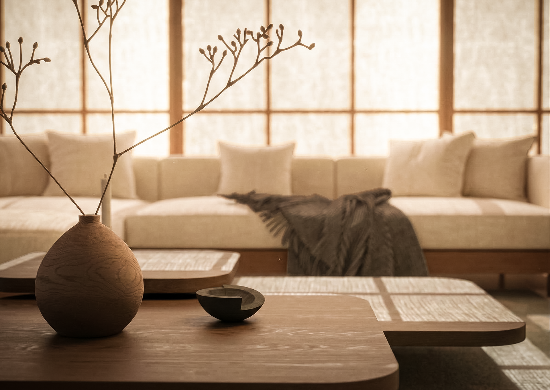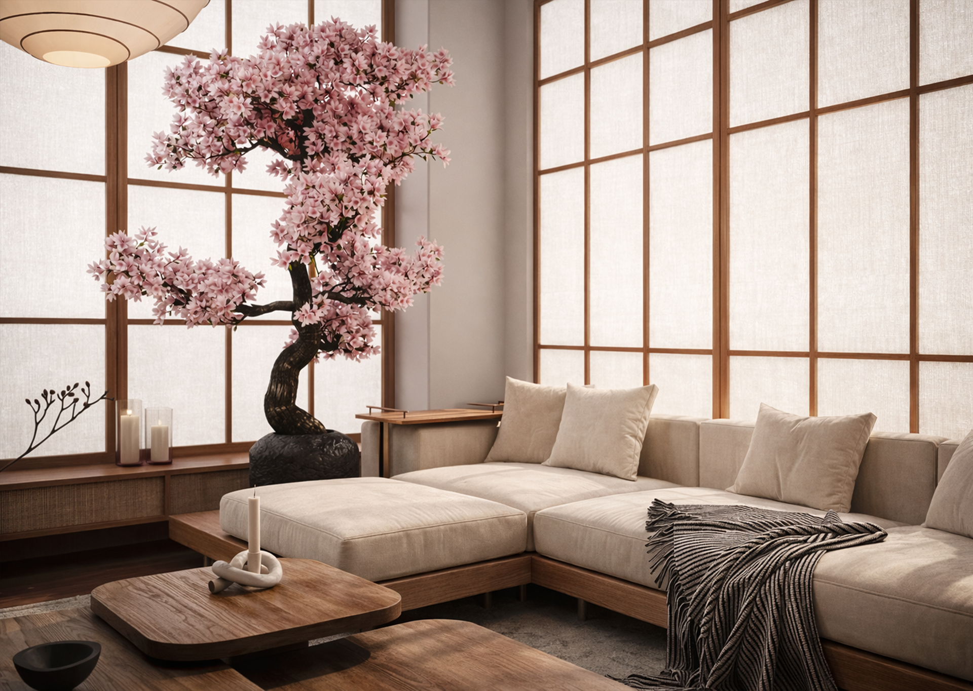 Japandi Living Room Interior Visualization