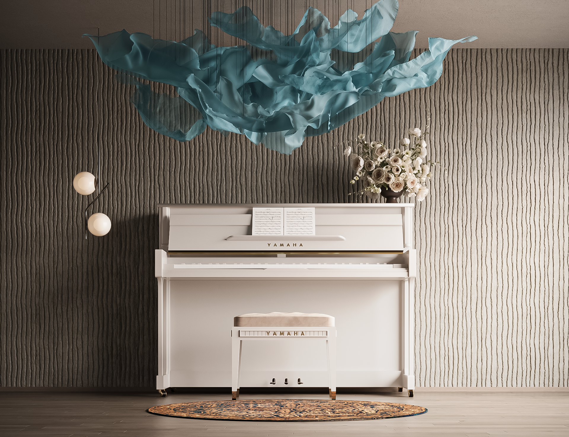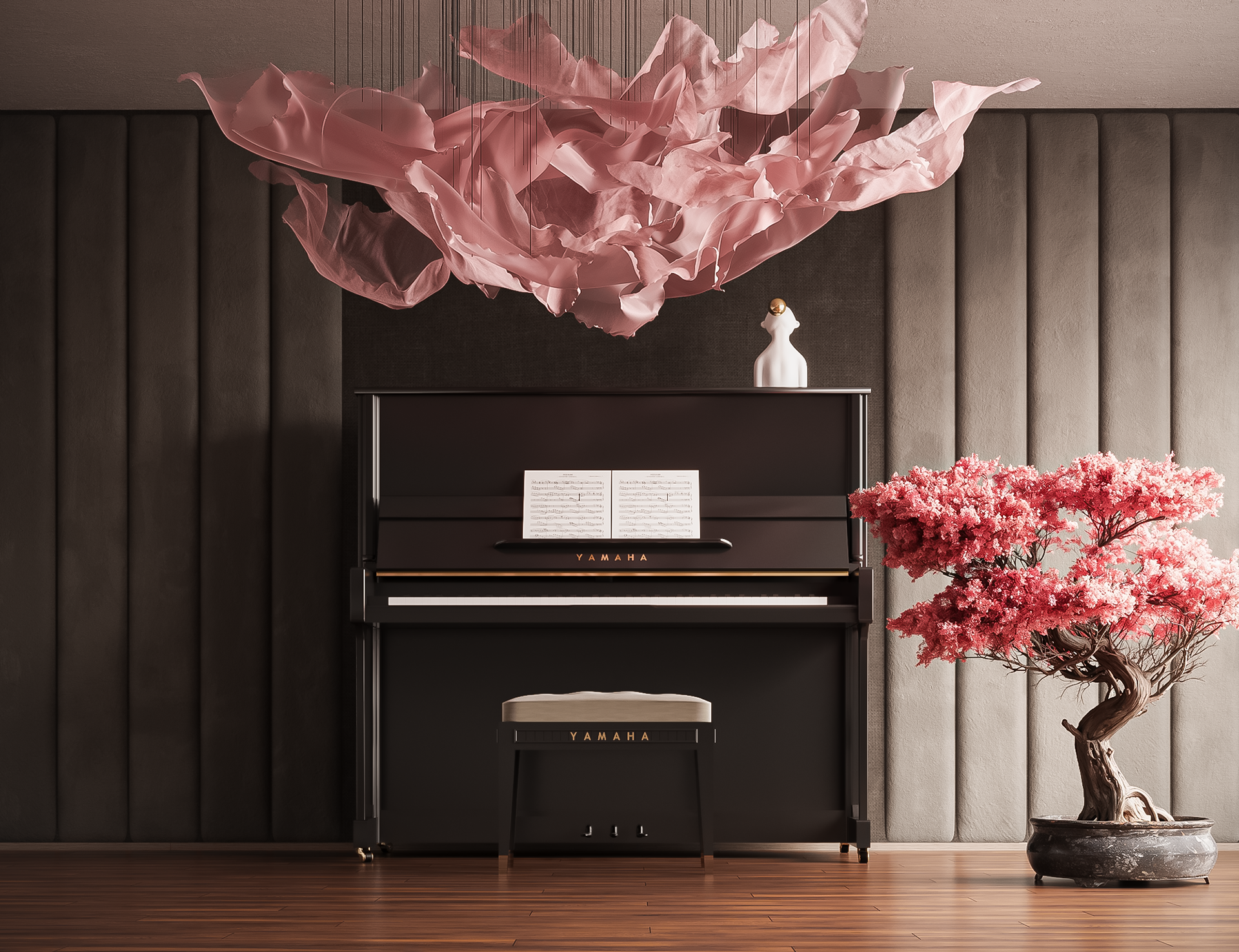 Piano Wall & Cozy Library Design