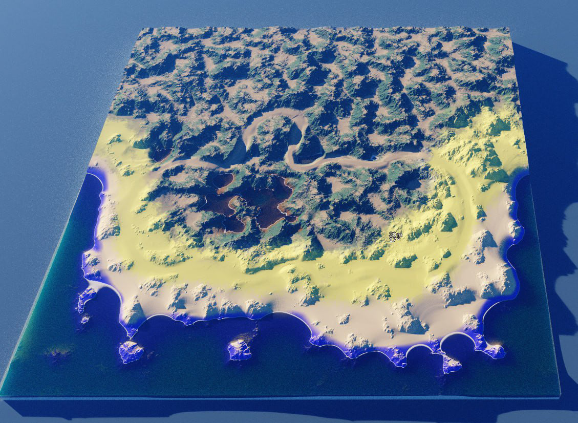 We started by building the landscape in World Creator. Then defined different landscape layers and color-coded them. Finally, exported the height map and splatmaps for each landscape layer and fed them to the landscape and the landscape material.