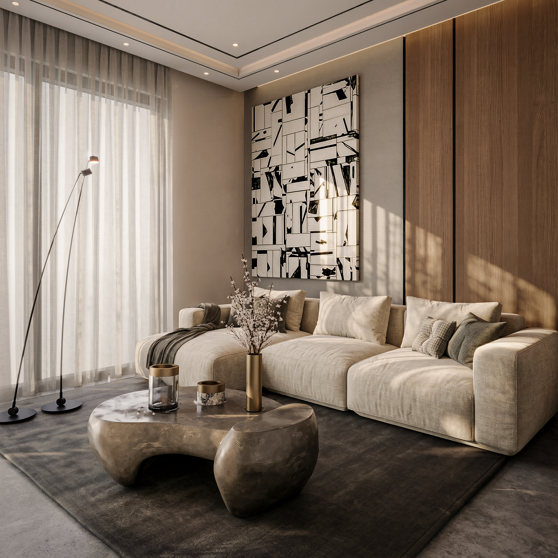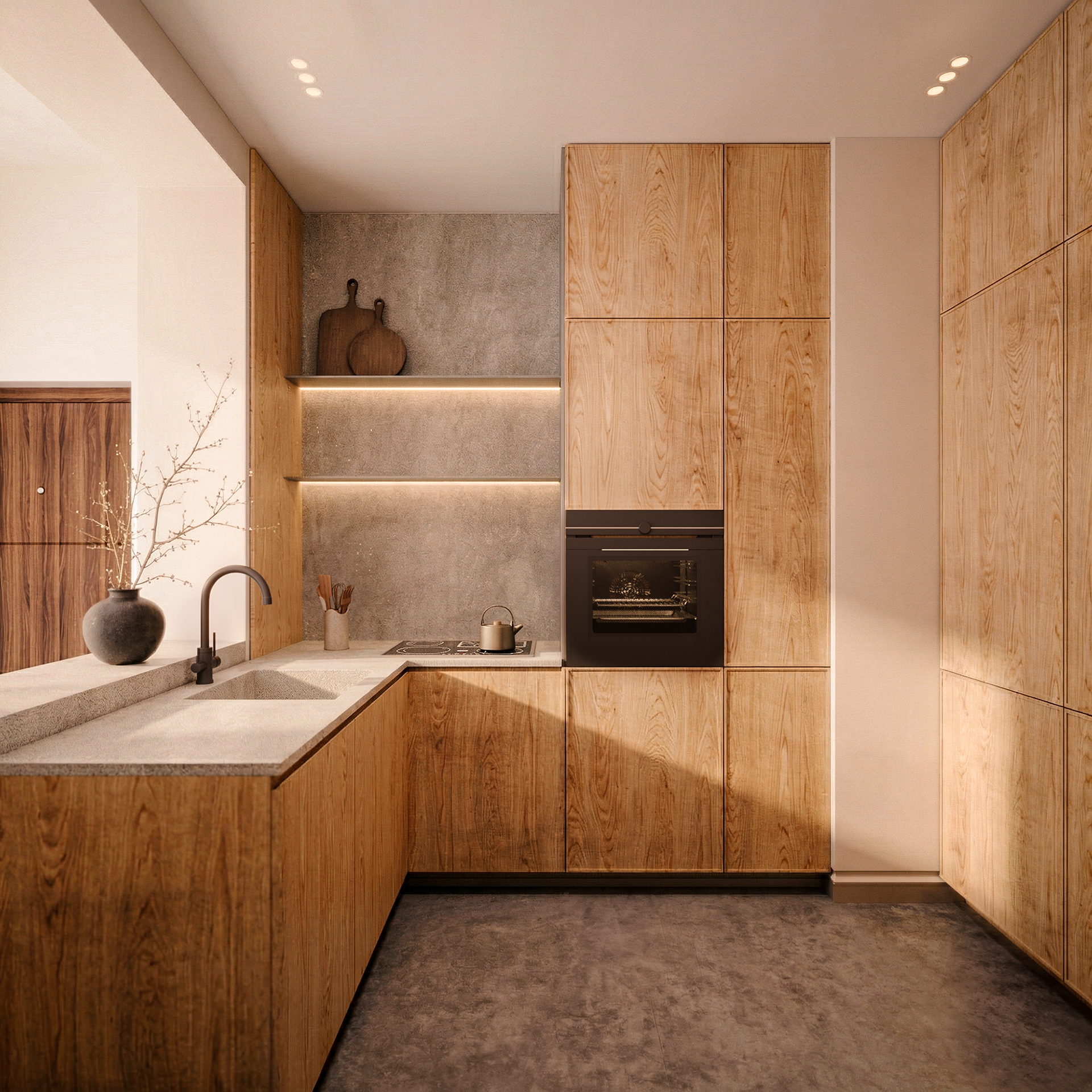 A warm and minimal apartment designed with a focus on natural materials, soft daylight, and calm spatial composition. The project explores the balance between modern minimalism and tactile, lived-in realism.